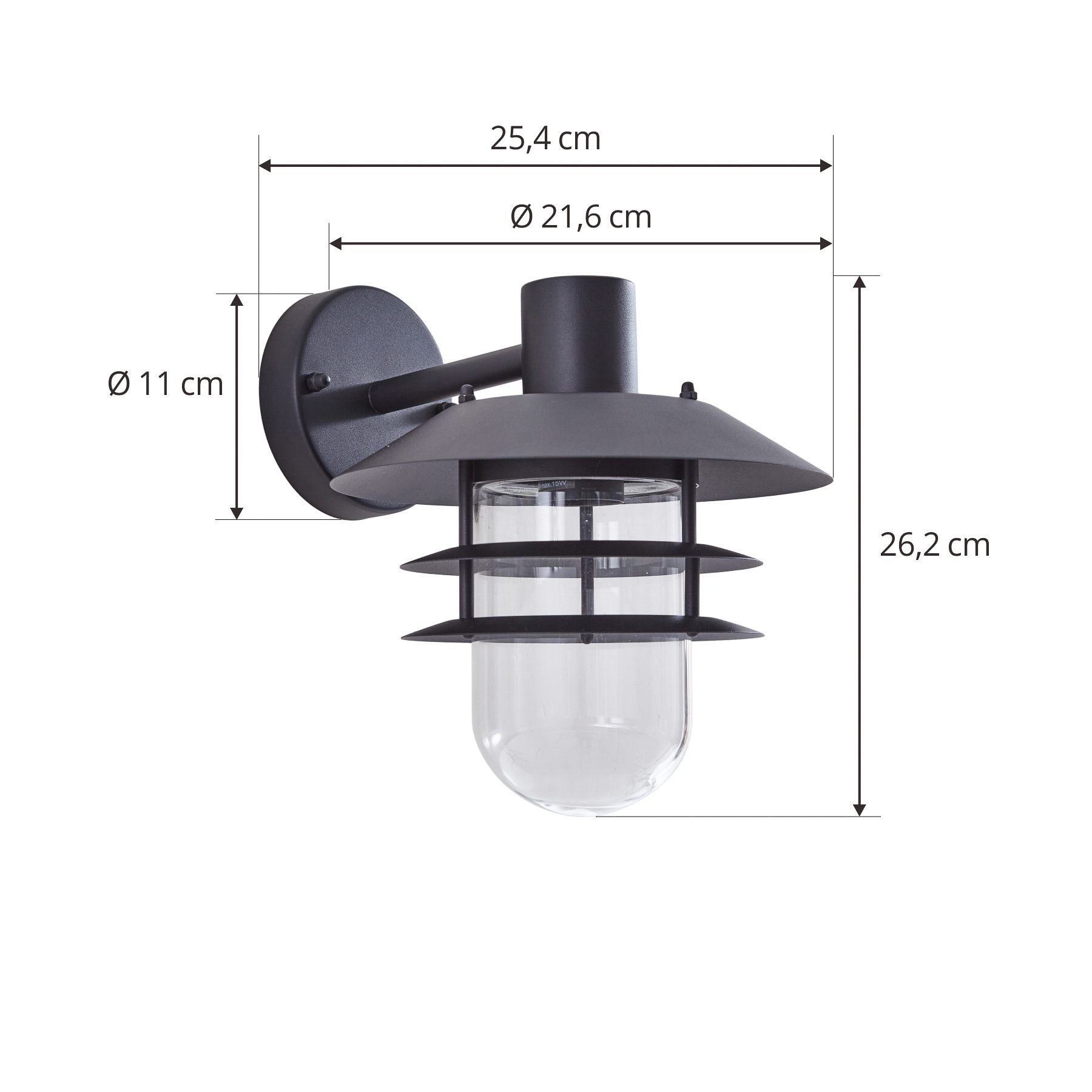 - Soporte de pared - Ø 11 cm, saliente 2,5 cm; pantalla - Ø 9,5 cm, altura 16,3 cm