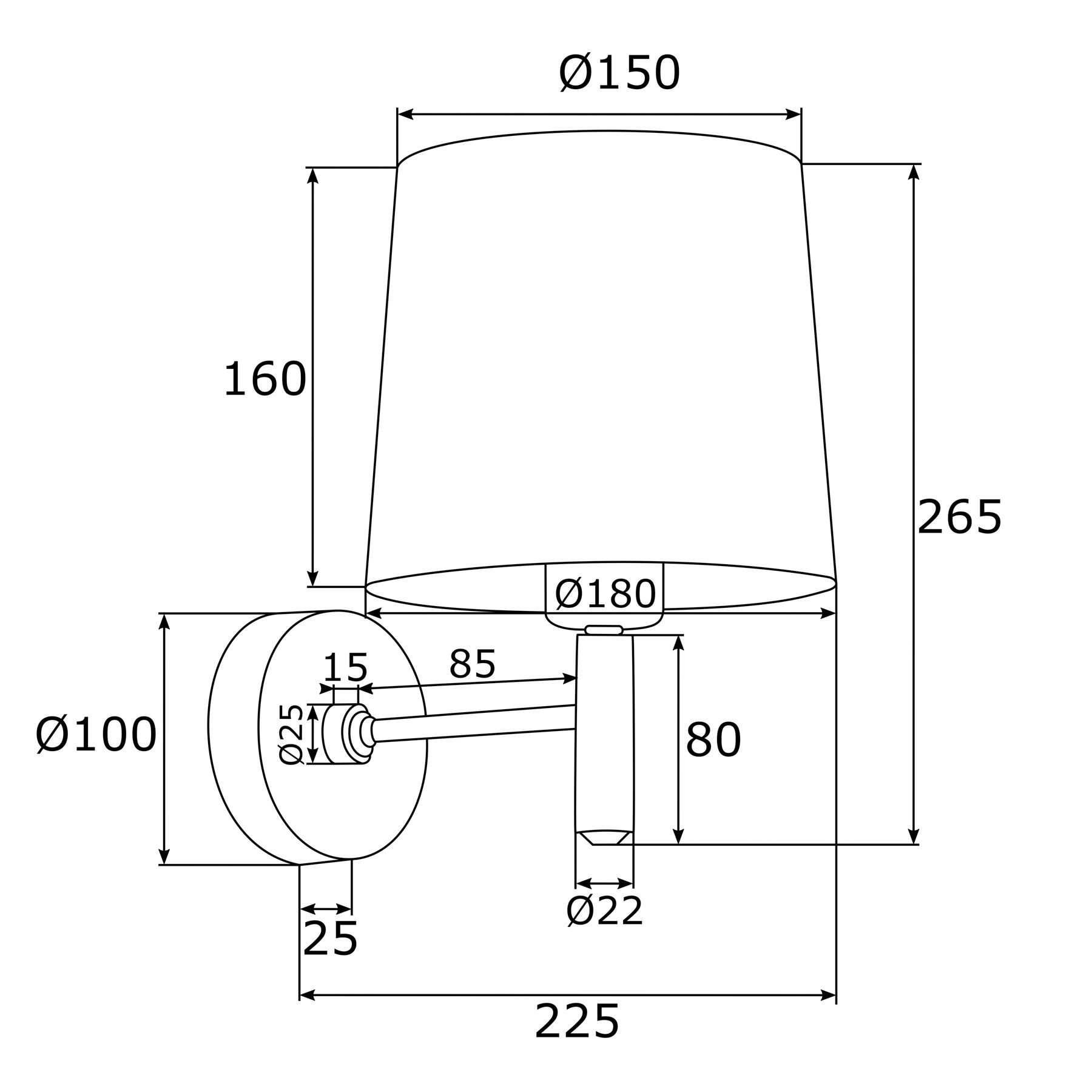 - Soporte de pared: Ø 10 cm, saliente 2,5 cm; altura de la pantalla 16 cm