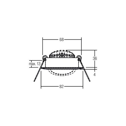 Símbolos de advertencia Foco empotrable LED BB03, regulable con corte de fase (RC), orientable, driver angular El foco empotrable redondo BB03, fabricado en aluminio, es el downlight adecuado para interiores privados y públicos con un estilo de decoración moderno, como el salón de actos de un hotel o el vestíbulo. Los LED se encuentran en un cabezal equipado con un reflector, que es móvil en todo su perímetro y puede orientarse así a la zona deseada. El balasto regulable y los muelles de montaje para la fijación sin herramientas están incluidos - Incluido convertidor LED angular; regulable externamente mediante corte de fase (RC) - Ángulo del haz: 38° - Margen de giro: 30° en todo el perímetro - Grosor del techo: máx. 1,3 cm