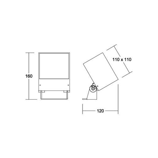 Símbolos de advertencia Blokk foco LED exterior orientable para montaje en superficie Este foco LED ambienta hábilmente esculturas, fachadas y otros elementos exteriores. El cabezal cuadrado de aluminio negro y con cubierta de cristal es orientable en la base de montaje, de modo que la emisión de luz puede dirigirse en función de la altura de la superficie a iluminar. Blokk se puede atornillar a la superficie correspondiente. El foco exterior tiene un diseño resistente a la intemperie y robusto - Ángulo de haz: 36° - Ángulo de giro: 90° - Grado de protección: IP65 - Resistencia a impactos: IK07 - Incluye balastro
