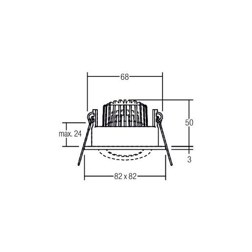 Símbolos de advertencia Deck cuadrado IP65 con cabezal orientable Con su marco sencillo y angular y su cabezal redondo con bombilla reflectora, este downlight armoniza con muchos interiores Mod. También puede utilizarse sin problemas en cuartos de baño, por ejemplo, gracias a su protección contra chorros de agua. Como detalles prácticos, el foco empotrable LED IP65 dispone de un cabezal de luz ajustable y dos muelles de montaje para la fijación sin herramientas en el recorte del techo - Incluye Konverter LED no atenuable - Ángulo de haz: 38° - Rango de giro: 30° en todo el perímetro - Grosor del techo: máx. 2,4 cm