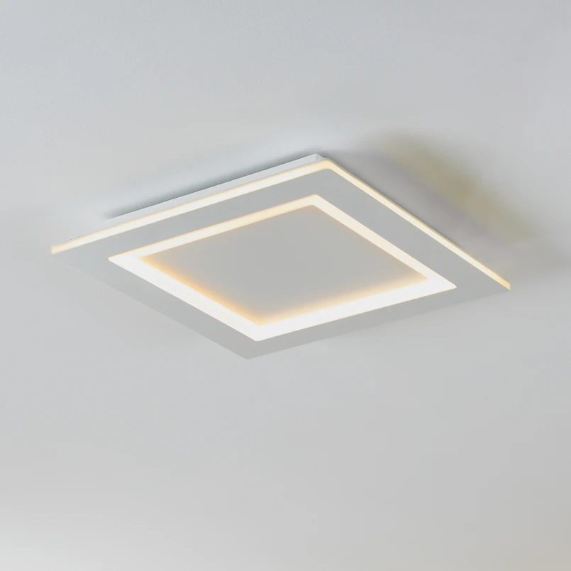 Símbolos de advertencia Plafón LED Padrogiano-Z Eglo connect, cuadrado El plafón LED Padrogiano-Z de la gama connect.Z smart home está fabricado en metal blanco y un gran marco de plástico. Los LED integrados proporcionan una luz agradable que puede ajustarse a voluntad gracias a la función de cambio de color RGB y CCT. La parte interior de la luminaria proporciona una luz blanca que puede ajustarse entre blanco cálido, blanco universal y luz diurna, mientras que los LED instalados alrededor del marco ofrecen una variedad de colores de la luz RGB. Tanto el anillo exterior como el interior pueden encenderse, apagarse y atenuarse por separado. La lámpara de techo se controla a través de una app gratuita (AwoX Home Control) y permite acceder a cómodas funciones adicionales como atenuador, temporizador, simulación de presencia y muchas más. El panel LED se controla mediante Bluetooth y ZigBee 3.0 y también puede controlarse mediante asistentes de voz compatibles. El mando a distancia disponible por separado permite manejar el plafón de forma alternativa. La lámpara cuadrada se adapta a una gran variedad de estilos de interior y proporciona una iluminación ambiental para cualquier habitación, ya sea en la cocina, el salón, el dormitorio, el pasillo o la oficina.