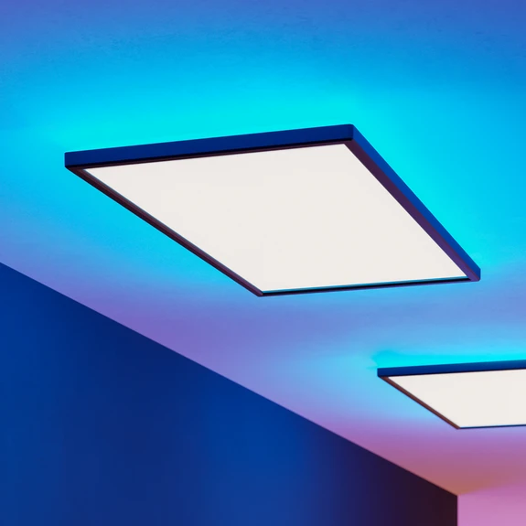 Símbolos de advertencia Rovito-Z Plafón LED rectangular, controlable de forma inteligente mediante aplicación, asistente de voz o control remoto El plafón LED rectangular Rovito-Z proporciona una luz brillante y uniforme en varios tonos de blanco. Ya sea blanco cálido, blanco universal o luz diurna, los LED integrados ofrecen todo el espectro y, por tanto, pueden crear una iluminación relajante o que favorece la concentración. Gracias a la función RGB, la luz de fondo puede cambiar a innumerables colores de la luz. La luz se controla mediante una aplicación adecuada o un asistente de voz compatible. Además de cambiar el color de la luz, la luminaria Rovito-Z también se puede atenuar y temporizar. Funciones / compatibilidad: - controlable con la aplicación gratuita AwoX HomeControl - compatible con sistemas domésticos inteligentes de otros fabricantes que utilizan ZigBee 3.0 - conexión directa con Amazon Echo y Google Home posible - mayor alcance gracias a la malla Bluetooth adicional - compatible con todos los artículos de la serie EGLO connect Bluetooth - controlable con un mando a distancia adecuado incluso sin acceso a Internet (ver accesorios)