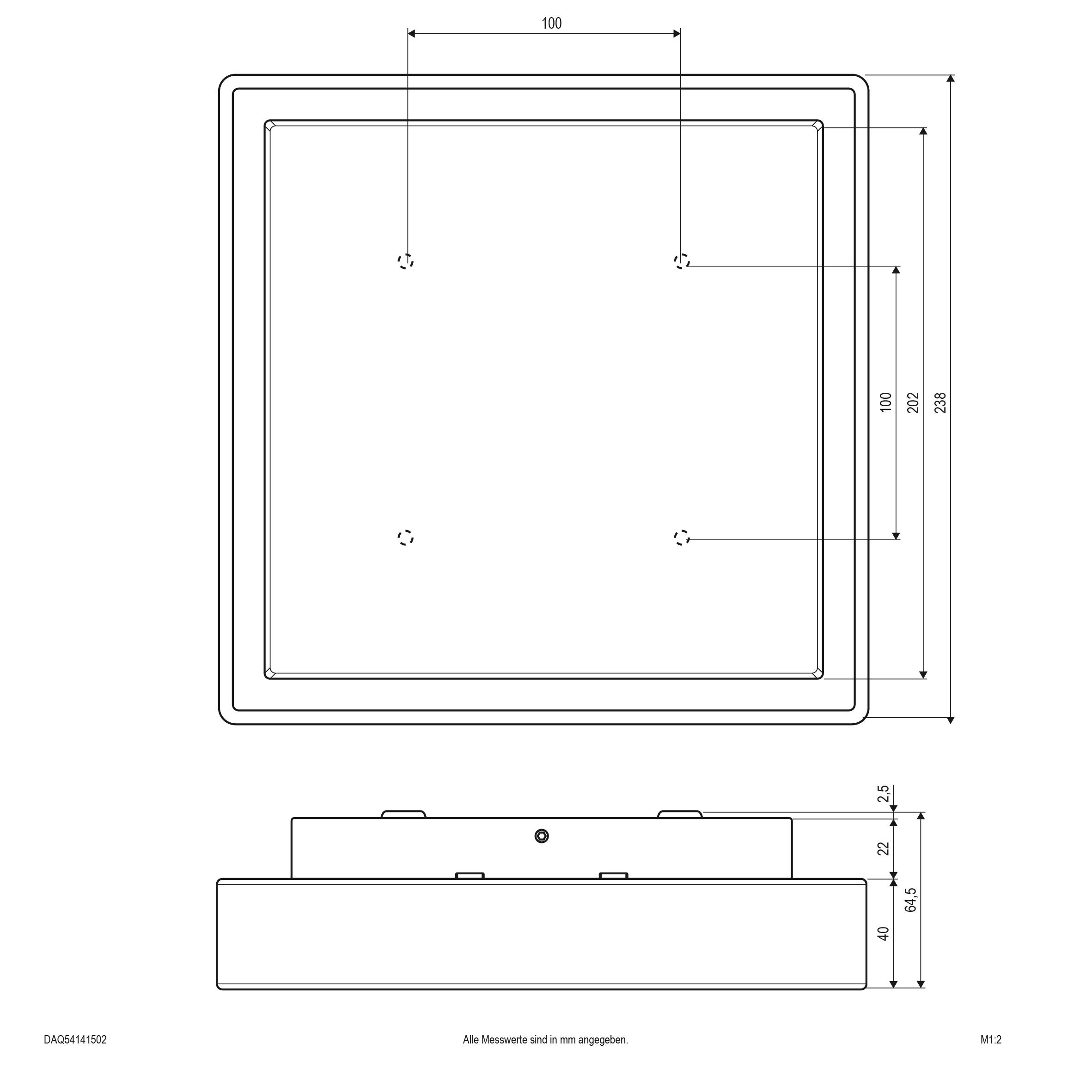 Símbolos de advertencia Lámpara LED de techo para exterior con recubrimiento de polvo Tectum con IP54 La carcasa de la lámpara LED de techo para exterior Tectum es de aluminio con recubrimiento de polvo y está coronada por una pantalla de plástico de alta calidad. Como la pantalla es de color blanco opalino, esta luminaria no deslumbra y, por lo tanto, también es ideal para su uso como aplique de pared. Además, un ángulo de haz muy amplio en combinación con potentes LED garantiza una iluminación buena y uniforme. Por lo tanto, la bombilla LED Tectum no sólo es una buena opción para su uso en exteriores como lámpara de techo sobre la entrada de la casa, sino que también es un enriquecimiento radiante en pasillos, huecos de escalera y en cualquier lugar en interiores. - protegida contra el polvo y las salpicaduras de agua (IP54) - resistencia a los impactos IK08 - foco muy amplio (aprox. 110°)
