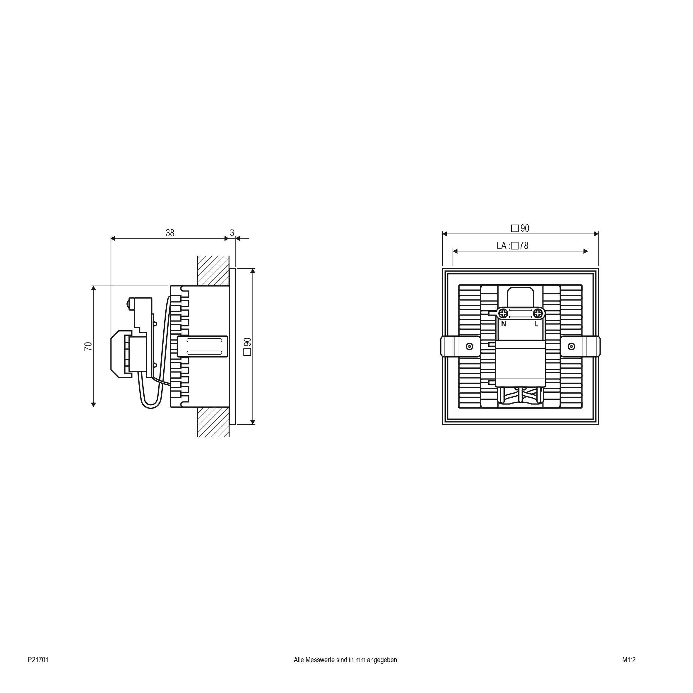 De aluminio con recubrimiento de polvo: Luminaria LED empotrada en la pared P2170 con controlador, iluminación indirectaLa luminaria LED empotrada en la pared P2170 proporciona iluminación indirecta en todo el interior. Se suministra con un controlador para que pueda conectarse directamente y esté listo para su uso. Para la fijación se utilizan dos muelles de tracción. Además, es posible fijar la luminaria con dos tornillos. La luz producida por los LED integrados se emite sin deslumbramiento gracias a la superficie estructurada del reflector. El reflector está inclinado hacia dentro y su aspecto crea un interesante contraste con la cubierta de diseño sencillo. P2170 está fabricada en aluminio con recubrimiento en polvo.Características técnicas- driver incluido- iluminación indirecta, sin deslumbramiento- con muelles de tensión y dos taladros ocultos para fijación con tornillos- corriente nominal de la luminaria: 700 mA- tensión de la fuente de alimentación: 100 a 240V / AC