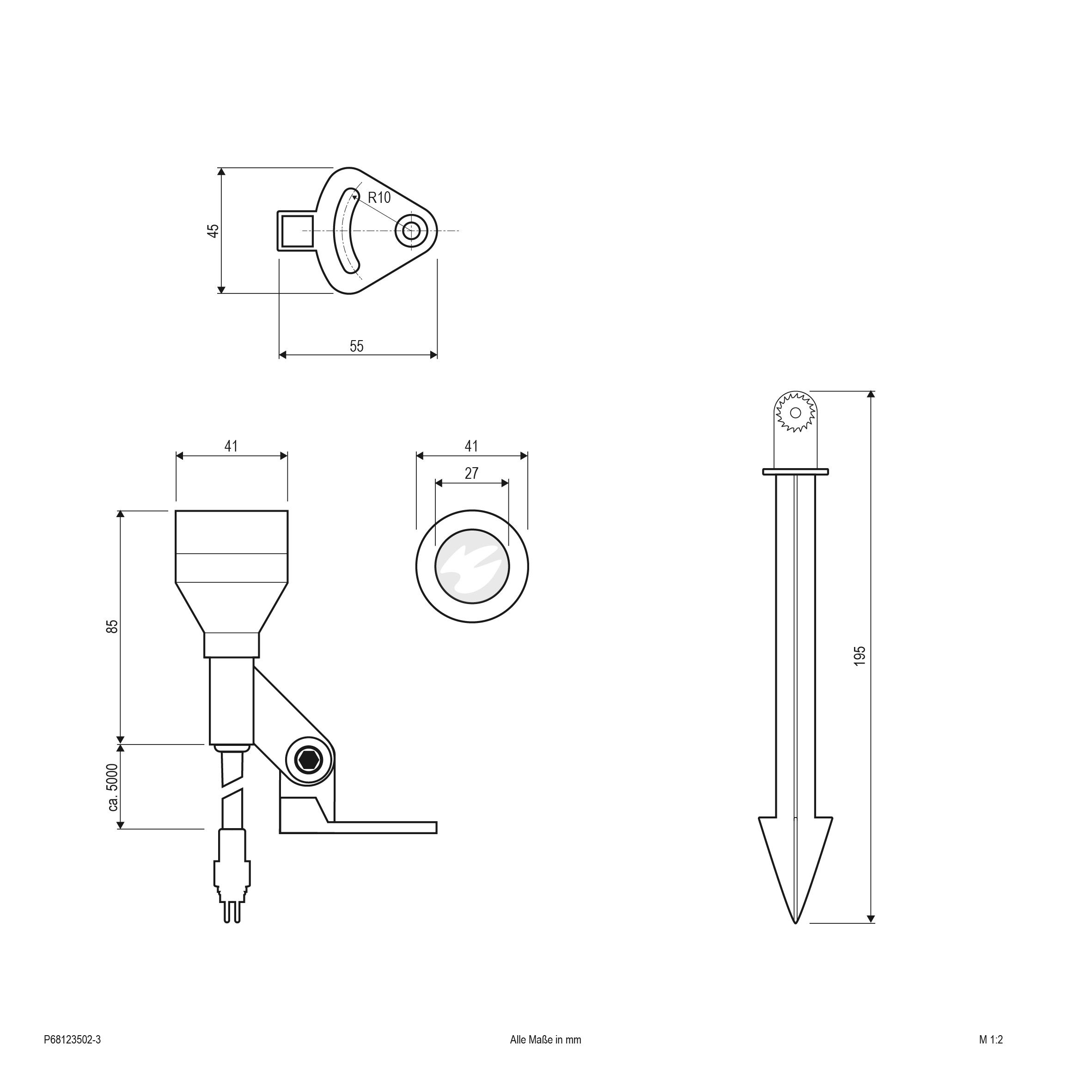 - longitud de las espigas de tierra 19,5 cm; Longitud de la línea de alimentación 180 cm, longitud del cable de conexión por lámpara 150 cm