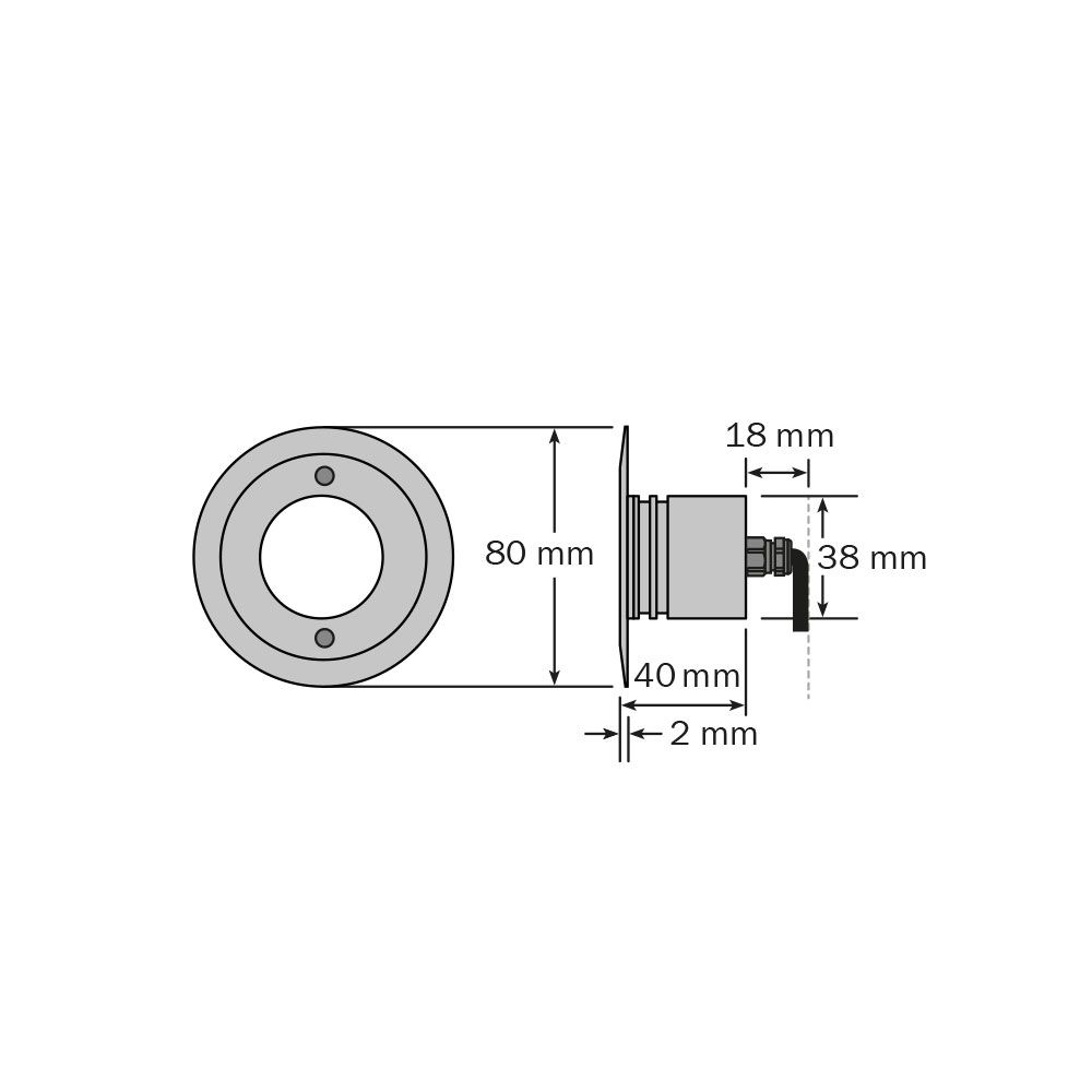 - incluye manguito de instalación de acero inoxidable V4A para colocar en paredes de hormigón o soldar en piscinas metálicas, con prensaestopas de acero inoxidable y conducto vacío de 1,5 m - incluye brida de sellado para sellar el manguito de instalación al instalar en piscinas de plástico y lámina, brida roscada de acero inoxidable, con 6 tornillos de acero inoxidable y junta de EPDM - incluye 2 tornillos de cabeza avellanada Torx M3 x 20 para la fijación al manguito de instalación - se necesita una llave especial (véanse accesorios) para apretar el prensaestopas en el manguito de instalación - para conexión directa a 12 V - grado de protección: IP68 - Resistencia a los golpes: IK08 - Profundidad máx. del agua: 5 m Profundidad del agua: 5 m - Temperatura ambiente durante el funcionamiento: - 25 °C a + 45 °C - 0 % a 100 % atenuable con atenuador PWM externo mediante entrada de atenuación separada