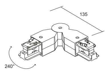 Este conector angular con carcasa de nylon reforzado con un 30 % de fibra de vidrio permite acoplar dos rieles trifásicos LKM QUADRO DALI en un ángulo ajustable. El rango de ajuste es de 240°.