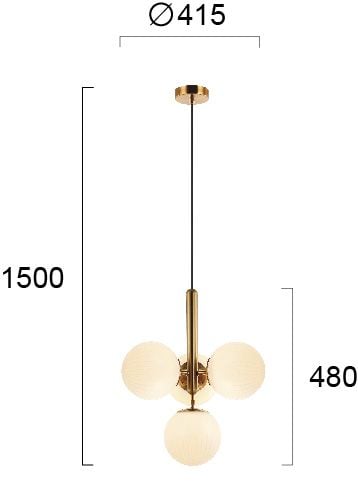 Lámpara colgante Jolin, vidrios esféricos, 4 luces