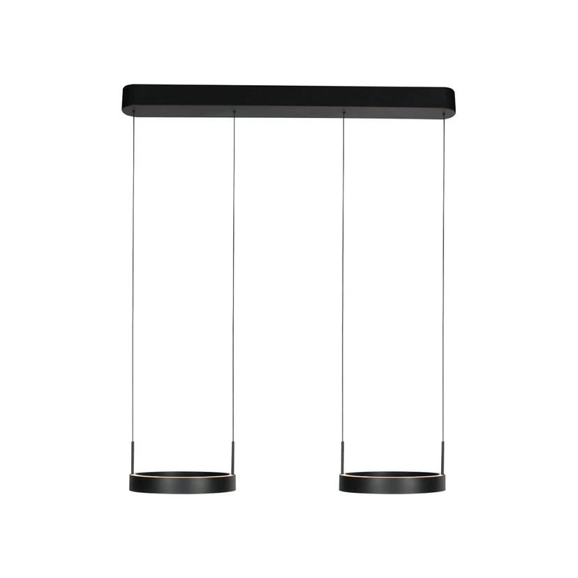 La lámpara colgante LED Mykty destaca por su diseño moderno de metal y plástico en un negro atemporal. Con sus líneas claras y una longitud de 95 cm, encaja armoniosamente en salones y comedores. Las fuentes de luz LED integradas proporcionan una iluminación uniforme y agradable tanto hacia arriba como hacia abajo, mientras que el color de la luz blanco cálido crea un ambiente acogedor.