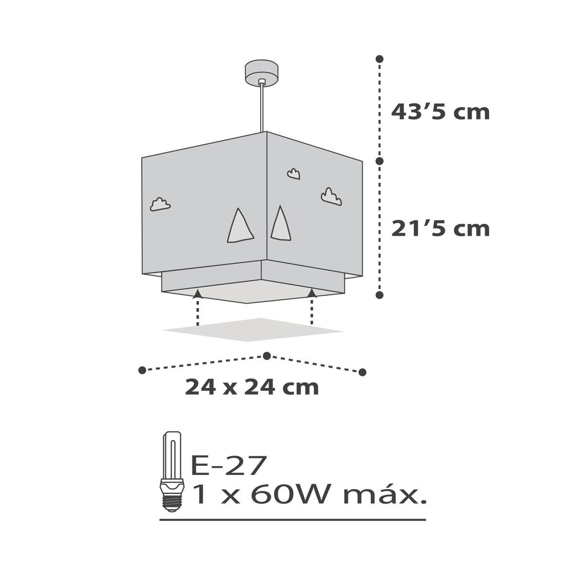 - Bombilla: 1 x 60 W