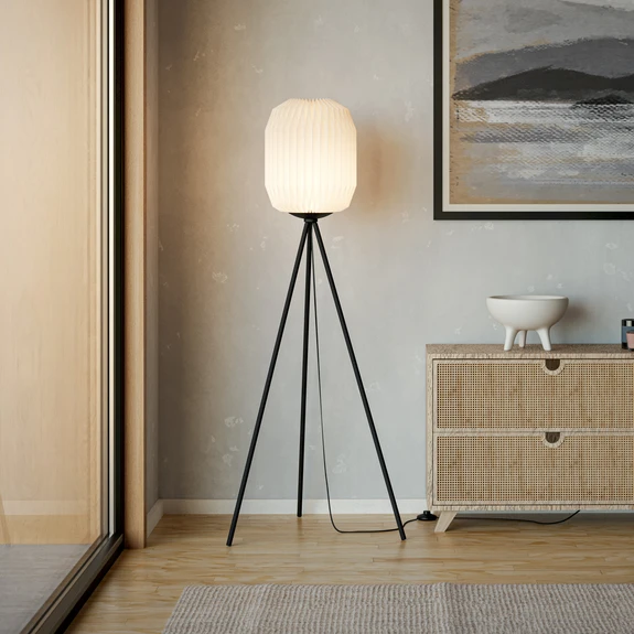 Lámpara de pie Belgrave, altura 141,5 cm, blanco/negro, metal