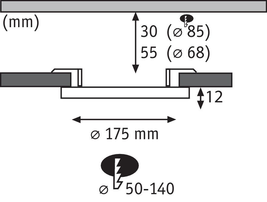 Símbolos de advertencia Panel LED redondo para empotrar Areo VariFit, blanco universal, atenuable en tres etapas mediante interruptor de pared El panel LED VariFit de Areo para instalar en el Deck o en la pared es redondo, sencillo y flexible. Das, mit einer einfachen Installationstellung von nur 1,2 cm und einer kleinen Rahmengrundlage, ist in jedem Interieurentwicklungskonzept entsprechend. Está equipado con LEDs blancos universales cuya luz brilla uniformemente a través del difusor y puede conmutarse a tres niveles de luminosidad utilizando el interruptor de luz de pared existente. La función de memoria guarda la luminosidad seleccionada hasta la próxima vez que se encienda. Das empotrable no sólo es adecuado para nuevas instalaciones, sino que también se adapta a muchos huecos de instalación existentes gracias a los muelles de sujeción ajustables de la parte posterior. En combinación con varias luminarias del mismo tamaño o de tamaños diferentes, el panel no sólo crea un aspecto magnífico, sino que también proporciona una iluminación básica para estancias más grandes. El uso en cuartos de baño u otras estancias húmedas tampoco plantea problemas, ya que el panel cuenta con el grado de protección IP44 adecuado - Muelles de sujeción ajustables en la parte trasera - 3 niveles de luminosidad 100%, 50% y 25%