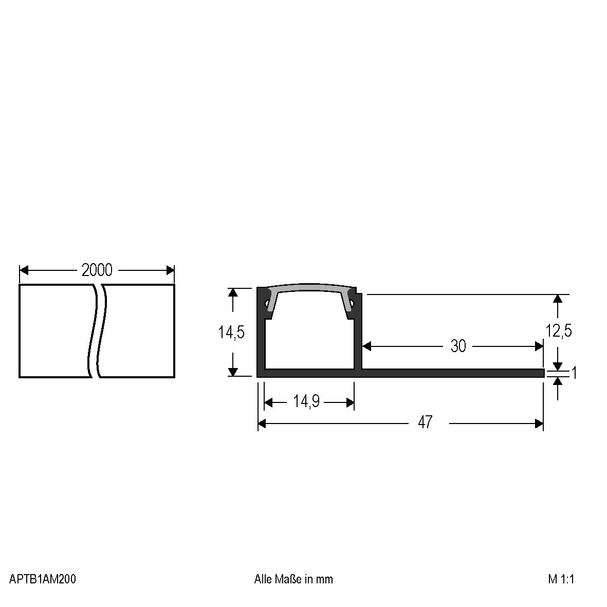 Perfil para tabiquería seca de aluminio anodizadoEl perfil para tabiquería seca es adecuado para placas de yeso con un grosor de 12,5 mm. Se suministra con una cubierta de policarbonato. La transmitancia es del 65 % - para tiras de LED de hasta 14 mm de ancho y una potencia máxima de 15 W LED por metro