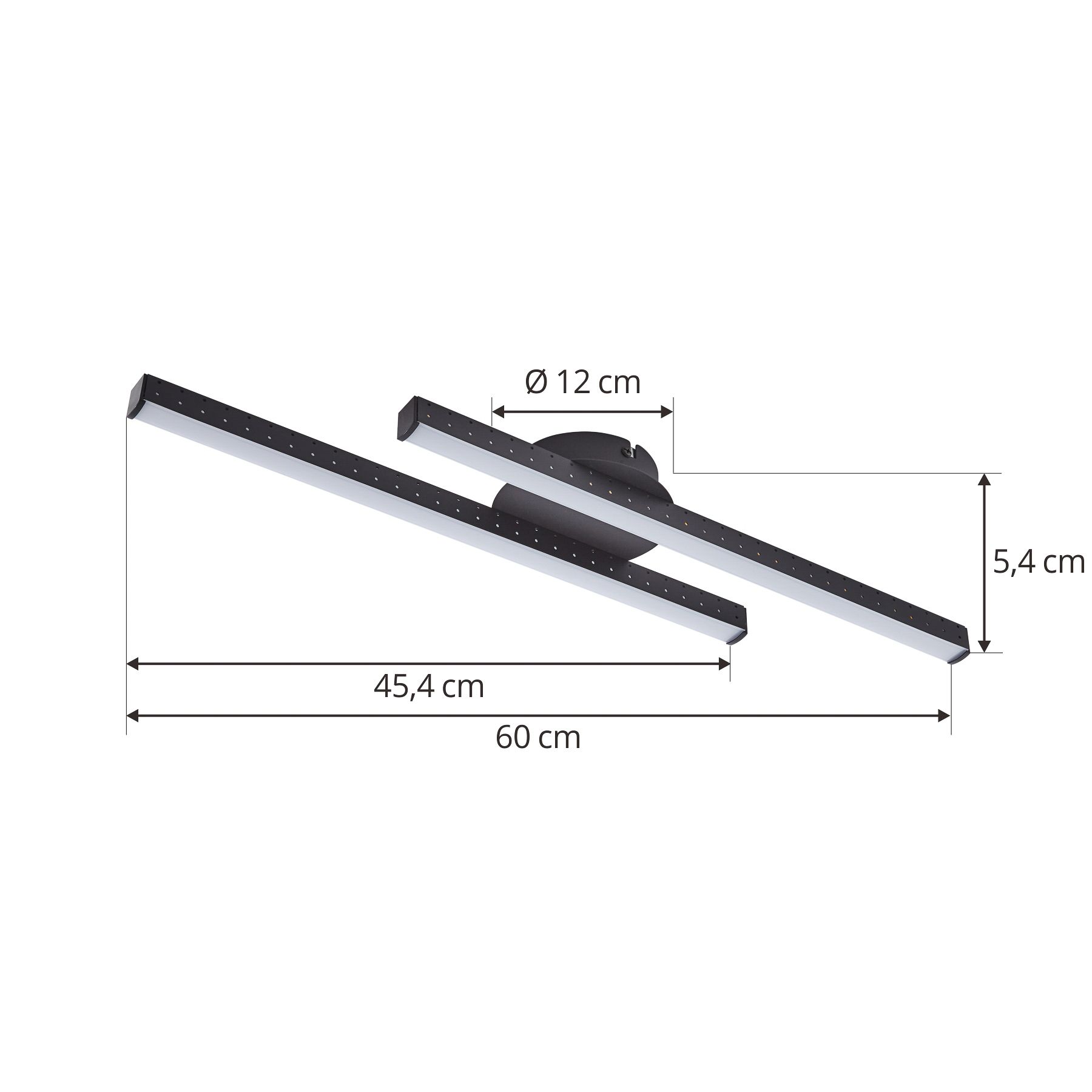 Moderna lámpara de techo LED Aurendor con dos tiras de luz Esta lámpara de techo Aurendor de bonito diseño ilumina su interior. La lámpara de techo de calidad de la marca Lindby es sinónimo de diseño de buen gusto y un ambiente único. Brilla con una atractiva luz blanco cálido. Die plafón complementa perfectamente su concepto personal de decoración gracias a su bello estilo y también se convierte en un Element decorativo cuando está apagado. Crea una gran atmósfera y ambienta cualquier espacio vital. Das matt black ceiling lamp ist ideal für erfolgreich die Konzeption Ihrer Wohnung. Cree una iluminación atractiva en su hogar con el plafón Aurendor.