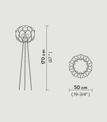 El nombre ya lo anticipa: para el diseño de la lámpara de pie Flora, el creador de la serie de lámparas, Zanini de Zanine se inspiró en la naturaleza. Alrededor de un difusor esférico, se disponen cerca elementos individuales de Pewterflex®, un plástico con una superficie brillante de color peltre desarrollado por el propio fabricante Slamp. Estos elementos hacen que toda la pantalla de la lámpara de pie parezca una gran bola de flores. Los reflejos y los juegos de luces y sombras crean efectos luminosos únicos que sumergen cada habitación en un ambiente incomparable. Además del material de la sombra, el fabricante Slamp ha desarrollado la fijación patentada mediante tecnología magnética. Esta tecnología magnética permite una fácil extracción de la sombra del marco del trípode.