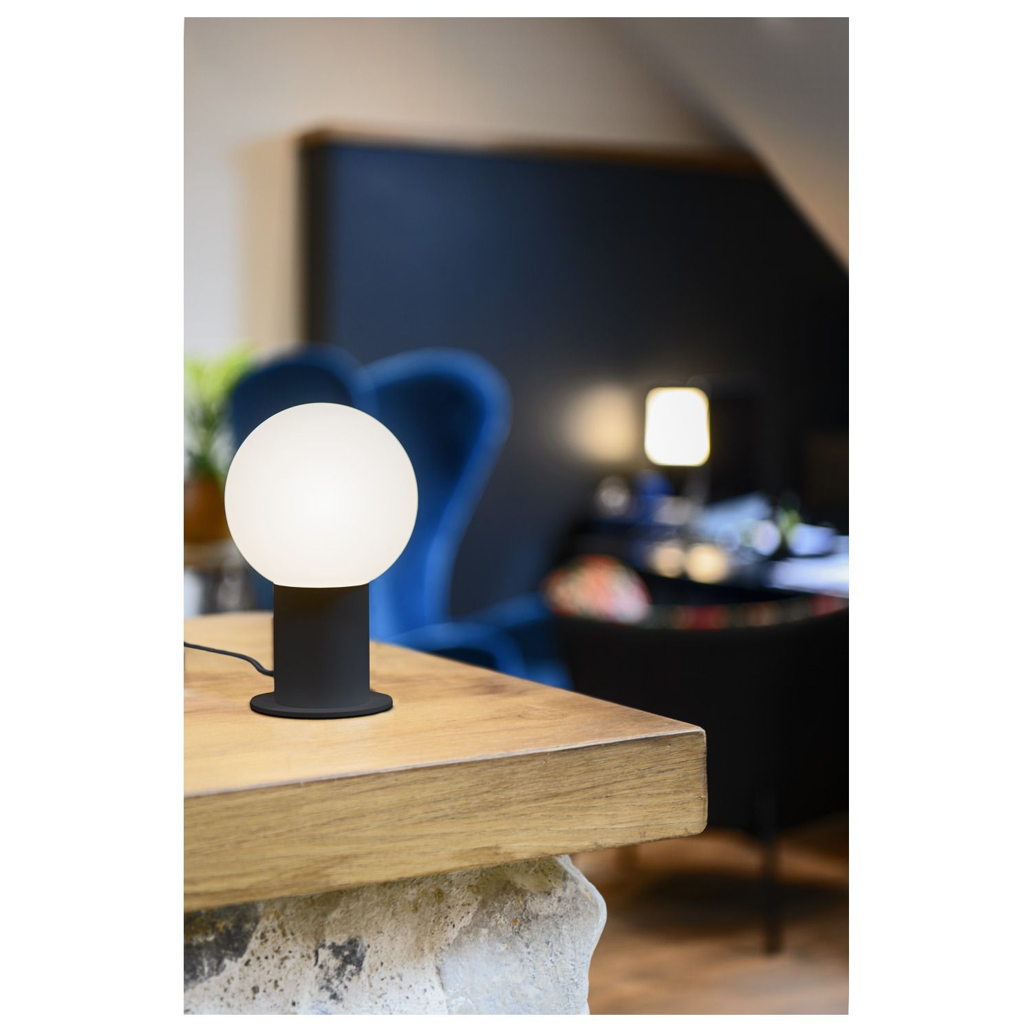 Símbolos de advertencia Lámpara de mesa Varyt de diseño moderno y elegante Simplemente redonda sobre cualquier mesa: la lámpara de mesa Varyt impresiona por su diseño moderno, elegante y exclusivo de SLV. Está fabricada en aluminio y acero con un acabado de alta calidad. La pantalla de cristal triplex blanco emite una luz homogénea que promete un ambiente muy acogedor. Equipada con un cable textil negro. Equipada con un interruptor de cable.